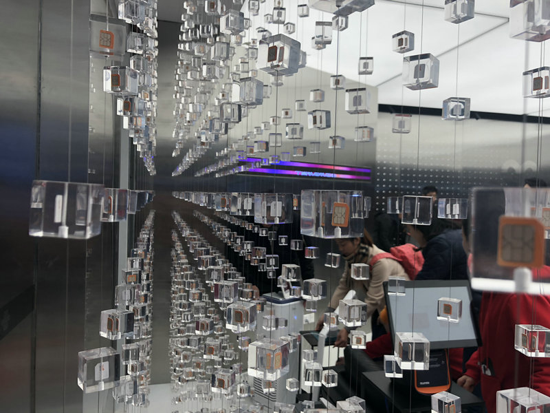 店面设计从传统运营商SIM卡汲取灵感,通过数万张定制款SIM卡“集合成墙”,使整个空间充满超炫的三维立体感;亚克力格子货架打造了独一无二通透感和立体感,方便用户购物的同时提升了购买体验;贵宾式柜面设计,拉近了与顾客的空间距离,完美体现了中国联通与阿里巴巴为客户提供更好服务的共同理念。
