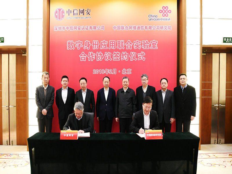 2月11日,中国联通研究院与中信网安公司在京签署合作协议,共同发起成立数字身份应用研究联合实验室。中国联通董事长王晓初、中信集团董事长常振明出席仪式,联通研究院院长张云勇、中信网安公司董事长严宁代表双方签署协议。